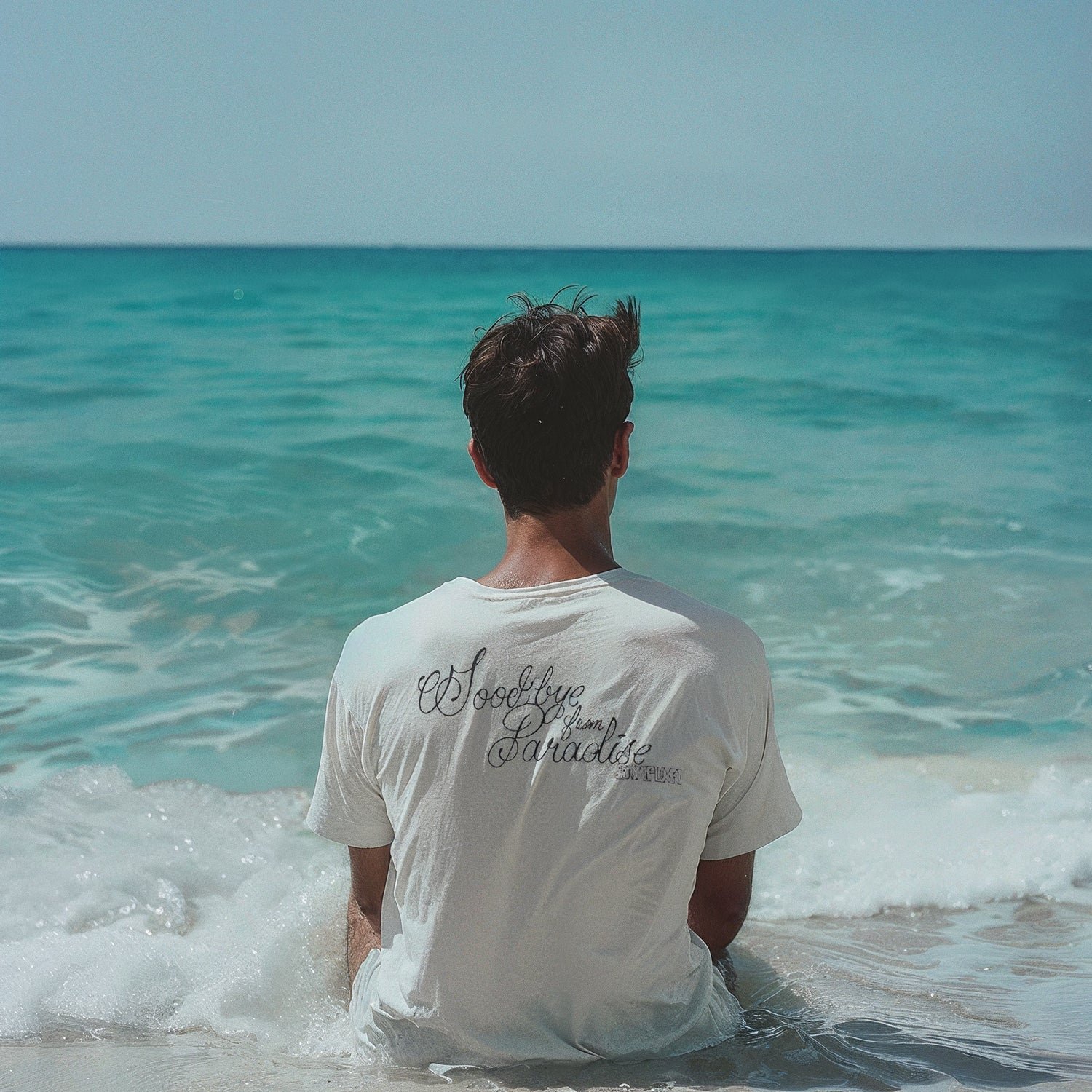 Short sleeve crewneck vintage tee made with 100% Supima cotton featuring screen printed goodbye from paradise graphics